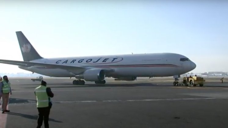 Procedentes de la planta de Pfizer, en Bélgica, llegaron 42 mil 900 vacunas para atender la emergencia sanitaria contra la COVID-19. 34 mil 125 serán para Ciudad de México y 8 mil 775 para Monterrey. El avión aterrizó en el Aeropuerto Internacional de la Ciudad de México a las 8:44 horas.