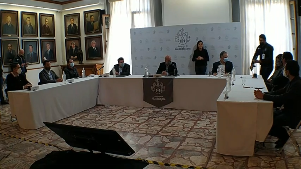 El ayuntamiento de Guadalajara, junto a la Coparmex Jalisco y a la Cámara de la Industria de la Construcción, presentó la plataforma Banco de Protección Municipal, para dar información clara sobre los proyectos de infraestructura en curso, y abonar a la transparencia, habla el alcalde tapatío, Ismael del Toro: