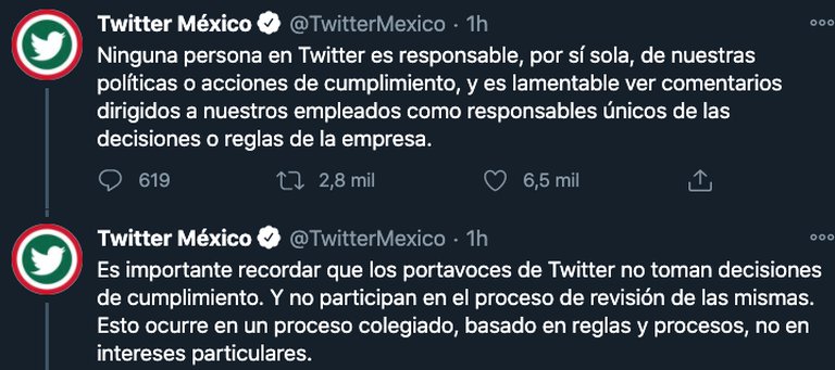 Después de que el presidente mexicano, Andrés Manuel López Obrador, acusó que el director de Twitter en México era militante o personaje cercano del Partido Acción Nacional, y que incluso fue asesor de un senador del mismo partido, la red social respondió de forma tajante.