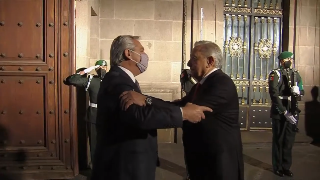 López Obrador esperó a Fernández en la Puerta Mariana minutos antes de las 7:00 am. El presidente argentino llegó a Palacio Nacional escoltado por un discreto operativo de seguridad y bajó de una camioneta negra para dirigirse al recinto.