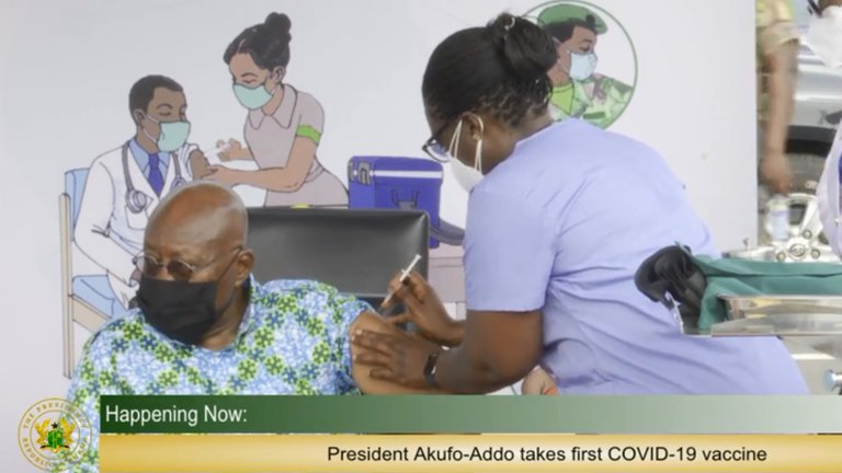 El presidente de Ghana, Nana Akufo-Addo, se convirtió este lunes en la primera persona del mundo en recibir una inyección de la vacuna contra el covid-19 financiada por Covax, el dispositivo para enfrentar la pandemia destinado a los países menos favorecidos.