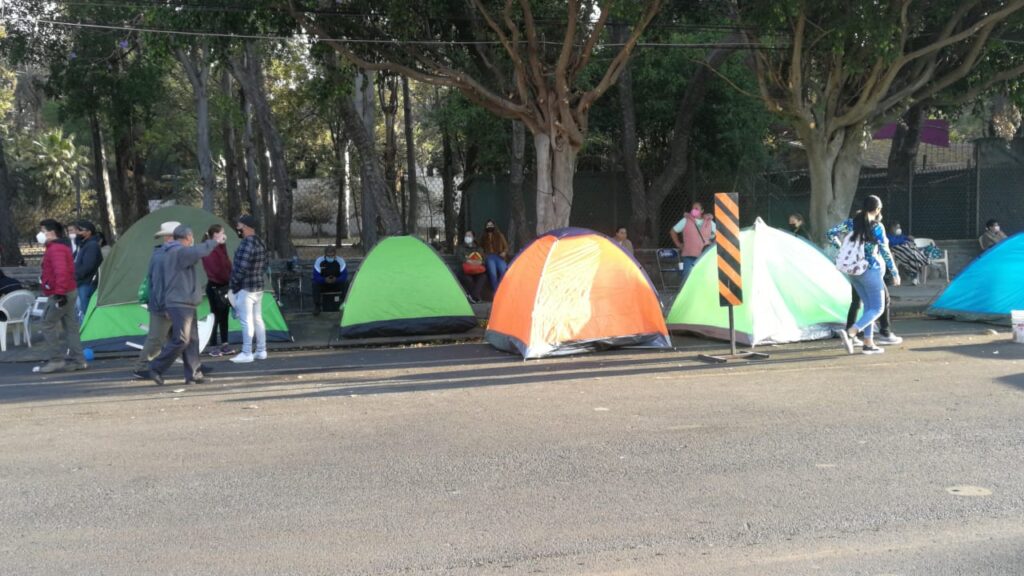 Este sábado y domingo será la vacunación contra el Covid-19 en Guadalajara, pero desde este jueves los ciudadanos ya están formados, incluso, se llevaron casa de campaña. Habla un ciudadano en el punto de evacuación del Agua Azul: