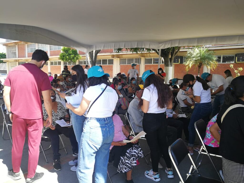 “Desde las 2 de la tarde para recibirlos al día siguiente, se han colocado al día de hoy, son tres mil vacunas del día 6, tres mil 500 vacunas ayer día miércoles 7, y hoy vamos a poner de nuevo el mismo número de tres mil 500 vacunas, en total iríamos hasta el sábado con 14 mil vacunas”