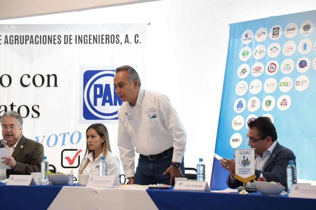 El candidato del PAN a la alcaldía de Guadalajara, Fernando Garza, platicó con la Unión Jalisciense de Agrupaciones de Ingenieros y habló sobre la extorsión de las autoridades para los permisos de obra pública.