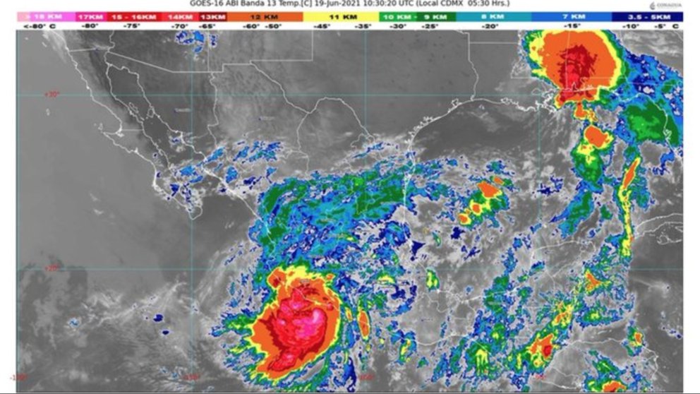 Además, persistirán las rachas de viento de 90 a 110 kilómetros por hora (km/h), con oleaje de 3 a 5 metros (m) y posibles trombas en las costas de Colima, Guerrero, Jalisco y Michoacán.