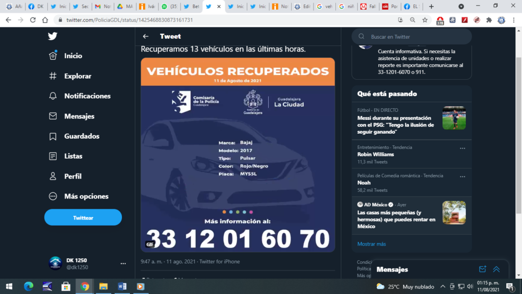 “En diferentes puntos de la ciudad, es importante que las personas que pudieran haberse visto afectadas por esta situación, revisen nuestras redes sociales donde ponemos los detalles de los vehículos, también es importante recordar el número de reporte que atendemos diariamente las 24 horas del día”