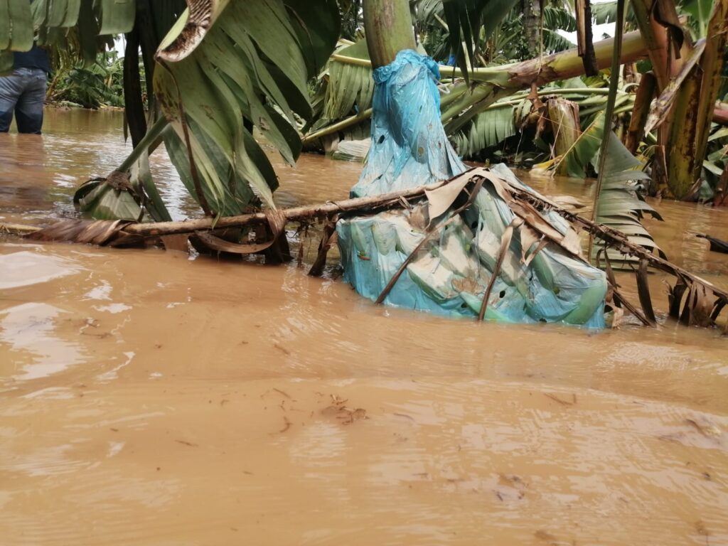 Kilómetros más adelante, en el entronque con el aeropuerto, la inundación impedía el paso a la terminar aérea de Manzanillo que suspendió operaciones. Los cultivos de plátano también terminaron anegados por el desbordamiento del Río Marabasco o cedieron a la fuerza de los vientos que alcanzaron 120 km por hora.