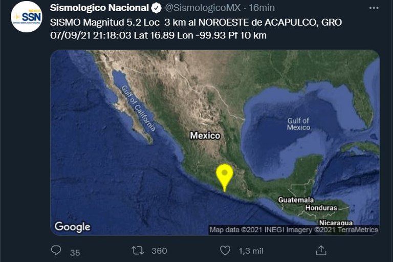 Cabe mencionar que el Sismológico registró a las 21:18 horas una replica de 5.2 grados, a 11 kilómetros del Puerto de Acapulco, 31 minutos después del sismo de 7.1.