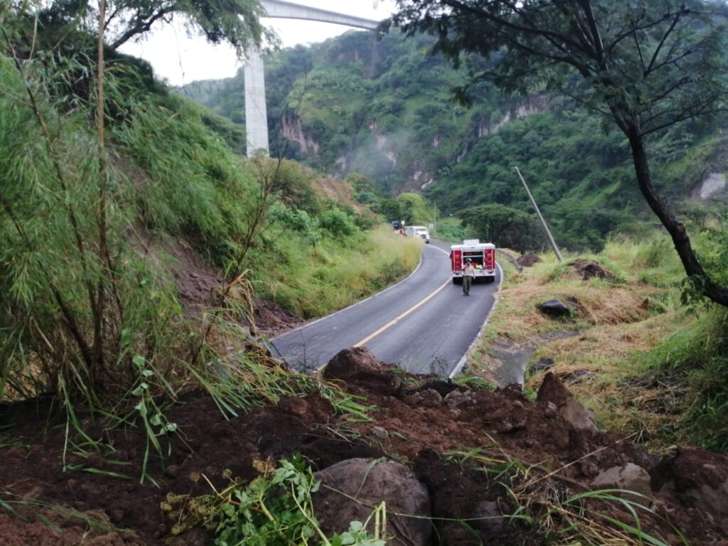Personal de protección civil de Tonila y Tuxpan, trabajan en las inmediaciones. El conductor de un vehículo que transitaba por esa zona resultó lesionado con el derrumbe, sin embargo, se encuentra sano y salvo.