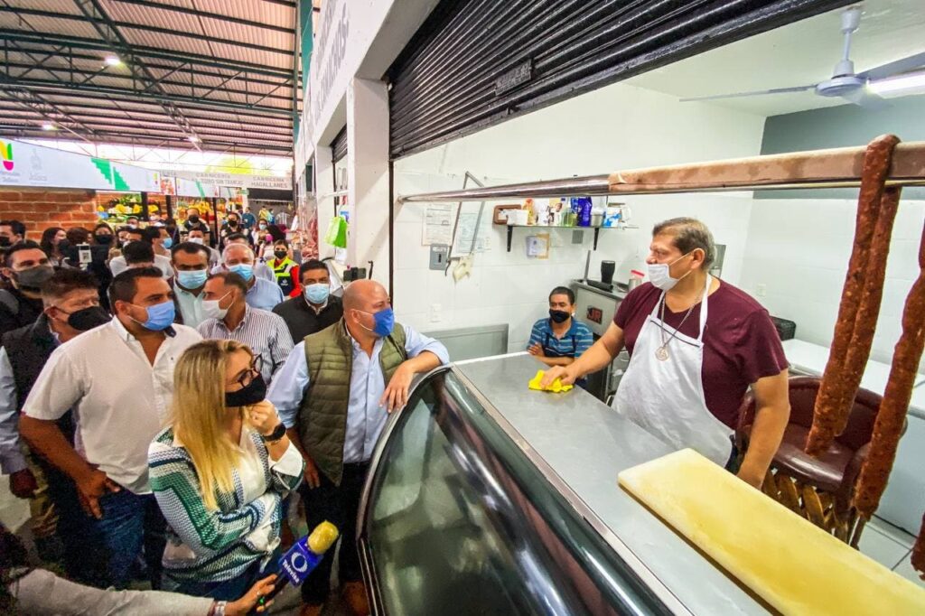 “El presidente municipal con licencia que inició este proyecto, en el cual entramos con tres millones y medio de pesos del estado, un millón y medio el municipio, y se estiró el presupuesto como hiciste tú todas las obras, al máximo para que rindiera, hiciste una gran transformación que nos permitió certificar este mercado en materia de salud, e irlo integrando poco a poco a la red de mercados municipales a los que hemos apoyado. Esto es una apuesta, para fortalecer la economía de cada comunidad, para fortalecer las economías locales, en medio de la pandemia, creo que tiene un significado todavía más importante”