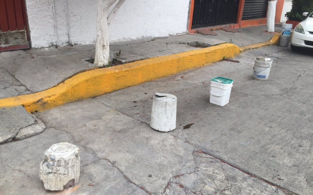 Desde la calle Sierra Nevada, hasta la Calle Salvador Quevedo, se observan a varios hombres apartando con cubetas los espacios, incluso uno de ellos es señalado por las personas como un hombre drogadicto y agresivo con las mujeres.
