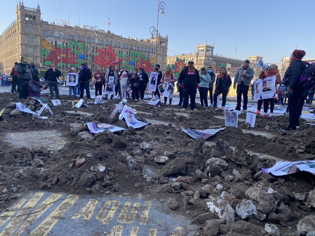 Al rededor de las 8:40 (tiempo del centro de México) Las familias de los desaparecidos se dirigieron, con megáfono en mano, a AMLO, quien se encontraba dentro del Palacio Nacional emitiendo su conferencia diaria “Nosotras las victimas, siempre, nos vemos obligadas a hacerles a ustedes el trabajo” denunciaron.