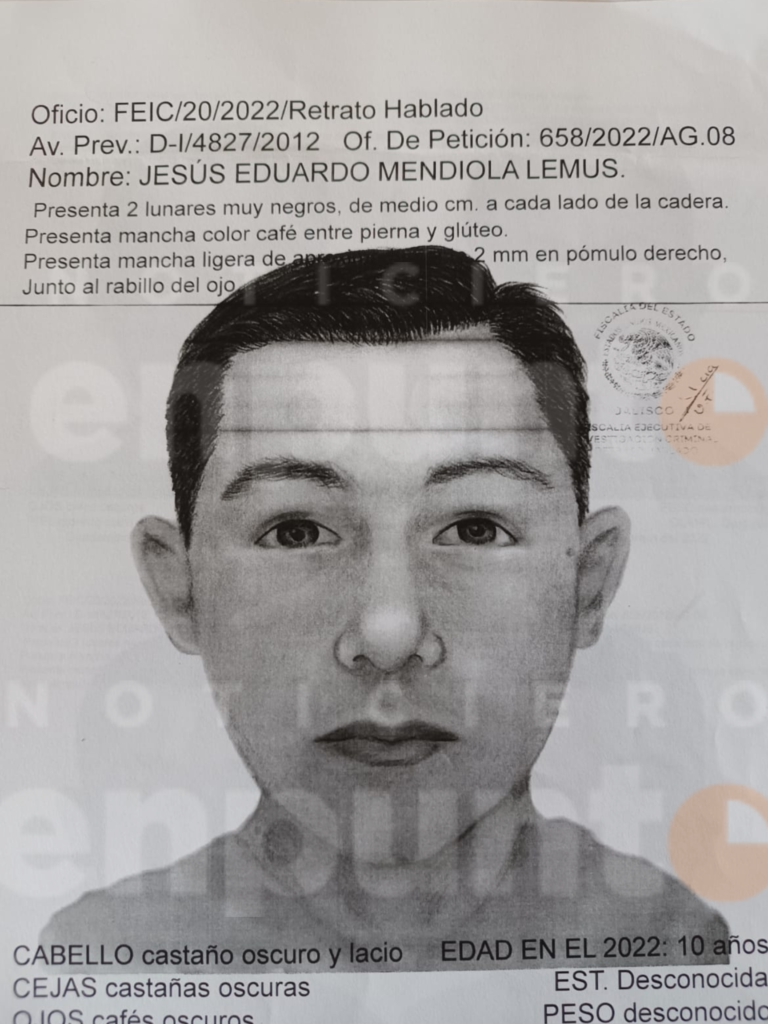Lalito tenía dos años y nueve meses cuando desapareció, esto ocurrió en una privada al cruce con Venustiano Carranza en la colonia El Mirador en Tonalá, el niño entró a una casa a ver una película y al parecer salió por otra puerta que comunicaba a un taller de artesanías, pero ya nadie lo vio, su mamá Virginia y su papá César, aún esperan que vuelva.