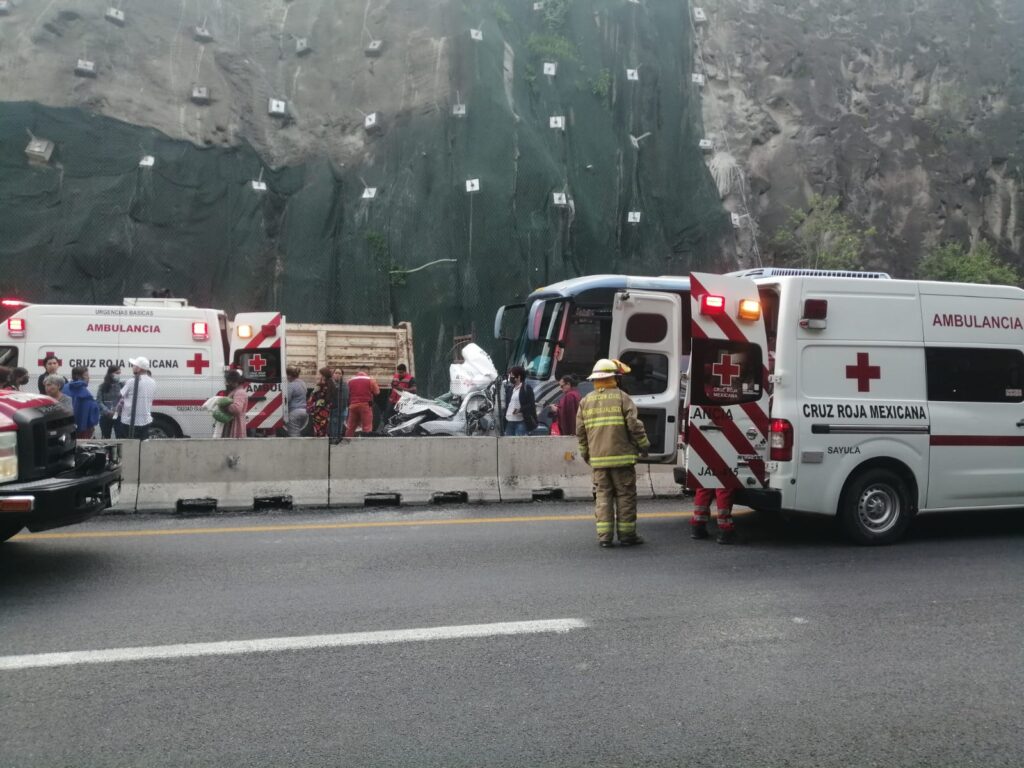 La autopista Colima-Guadalajara, fue el escenario de un accidente, los hechos ocurrieron este jueves en el kilómetro 67 de esta vía, en donde un camión de pasajeros impactó contra un vehículo particular, tras el percance dos personas resultaron con lesiones de consideración, ningún pasajero que viajaba en el autobús, resultó lesionada. La Unidad Estatal de Protección Civil de Jalisco, atendió el Reporte.