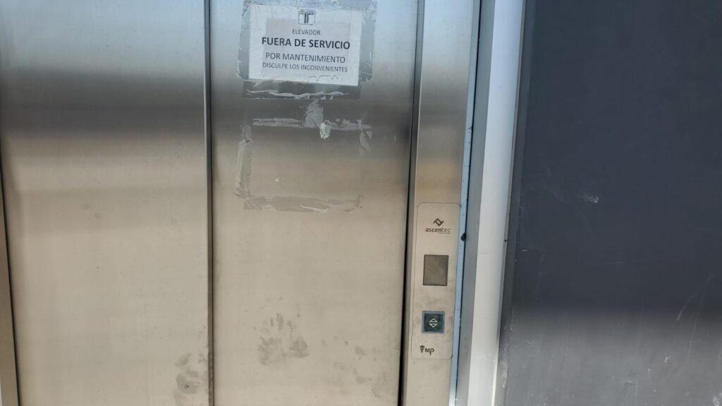 En semanas anteriores los elevadores descompuestos de mi macro periférico tenían una hoja de papel que decía, fuera de servicio. Ahora ni eso, simplemente no sirven. Los usuarios están obligados a caminar las largas rampas o escaleras. No hay fecha para que arreglen los aparatos.