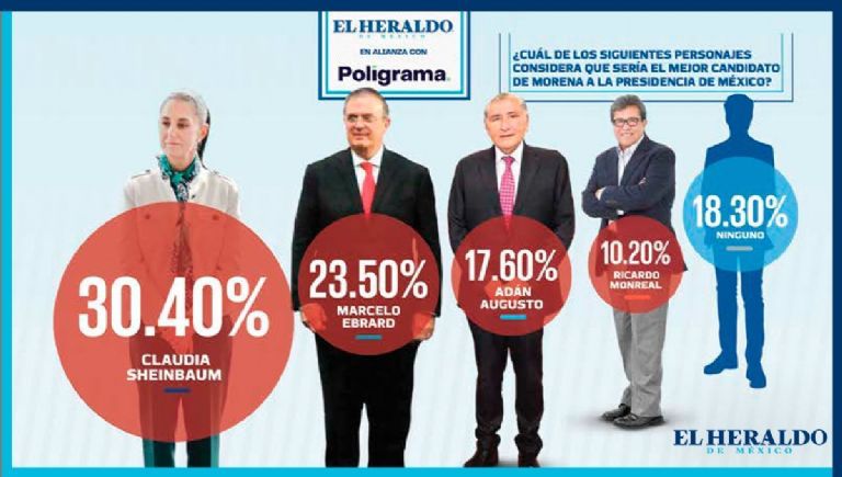 Según la encuesta del Heraldo de México, la jefa de Gobierno de la Ciudad de México, Claudia Sheinbaum es la favorita como candidata de Morena para la presidencia.