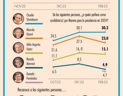 Entre los aspirantes presidenciales de Morena, Marcelo Ebrard es el más conocido entre los ciudanos con 71.5 por ciento, pero el 30.2 por ciento prefieren como mandataria, a Claudia Sheinbaum, pues consideran que representa más lo valores de la 4T.