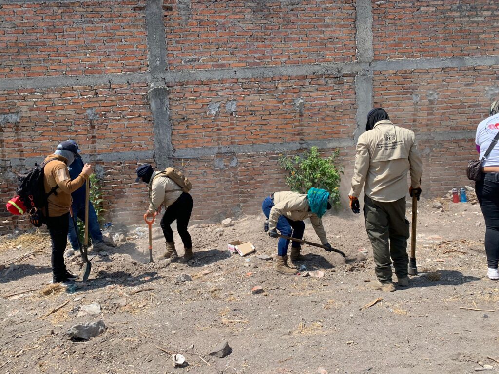 Con picos, palas y varillas, este martes madres buscadoras excavaron, removieron escombro y piedras para dar con los restos de personas desaparecidas. Los trabajos son en la colonia Potrero Nuevo, en El Salto, la integrante del colectivo “Buscando Corazones en Jalisco”, Lizbeth Gutiérrez explicó el trabajo realizado.