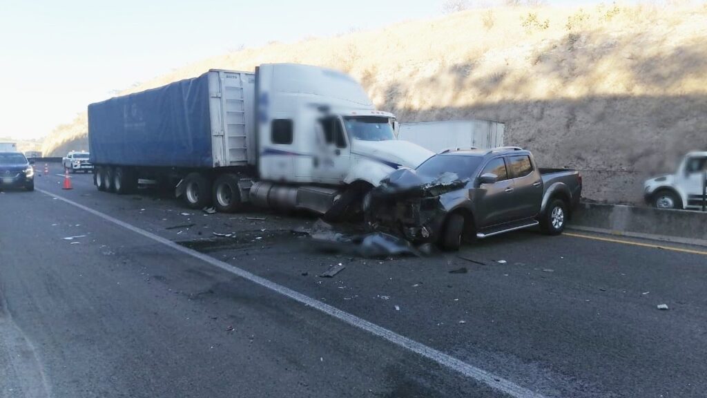 En total chocaron dos tráileres y cuatro autos particulares. Hasta el momento desconocen qué provocó este choque múltiples, afortunadamente todo quedó en pérdidas materiales.