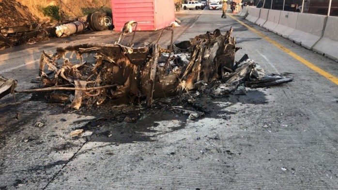 Durante la madrugada de este lunes registraron un accidente en el macrolibramiento a la altura del poblado de San Juan Evangelista, en Tlajomulco de Zúñiga, donde tres tráileres participaron en un accidente, el conductor de un tractocamión quedó prensado y murió calcinado en la cabina, en tanto que los otros dos operadores fueron trasladados en estado grave a un hospital privado.