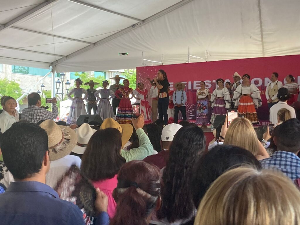 En el evento tres sujetos con máscaras de Vicente Fox, Carlos Salinas y Felipe Calderón subieron al escenario, Claudia sheinbaum aprovechó para remarcar los errores de administraciones anteriores.