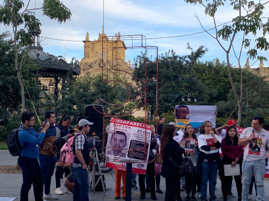 En medio de una protesta, integrantes de colectivos de personas desaparecidas exigieron este miércoles la reinstalación del antimonumento 5J, en memoria de las víctimas del 5 de junio del 2020. Denisse Montiel denuncia que pese a contar con suspensión definitiva a su favor, el ayuntamiento de Guadalajara y el Gobierno del Estado incumplen con la reposición de la estructura.