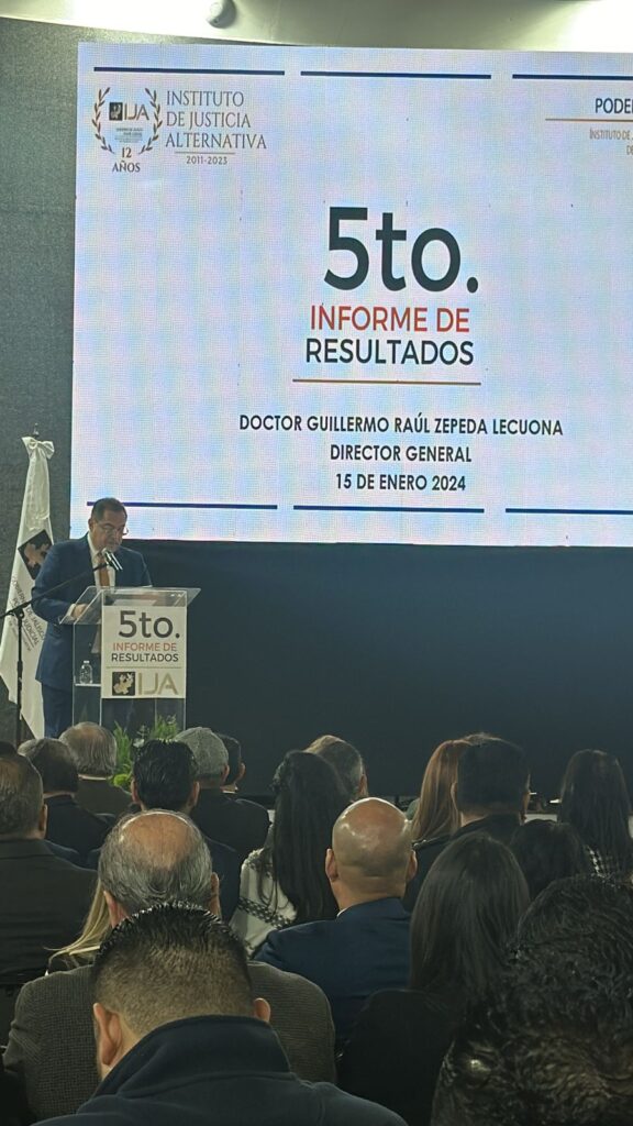 La mañana de este lunes el director del Instituto de Justicia Alternativa, Guillermo Zepeda rindió su quinto informe, al frente del organismo que busca la sana convivencia, la mediación y la impartición de justicia en Jalisco.