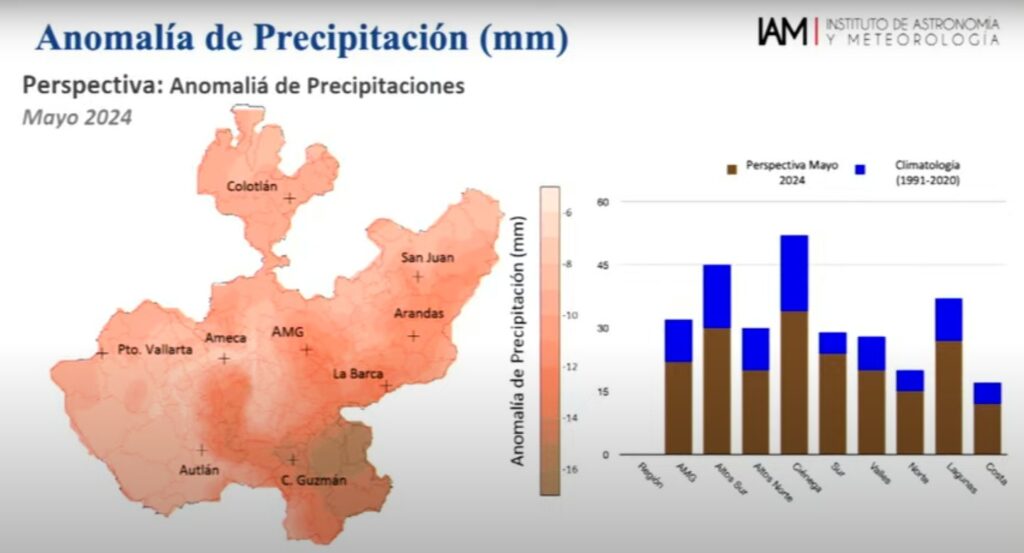 En conferencia de prensa, los meteorólogos operativo del IAM , Mauricio López Reyes y Maestro Julio Zamora Salvador advirtieron que a partir del 5 de mayo habrá temperaturas que superarán los 35 grados Celsius en la Zona Metropolitana de Guadalajara, alcanzando incluso los 37 grados en algunas zonas específicas.