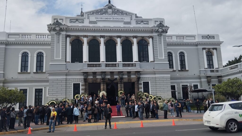 En el paraninfo de la Universidad de Guadalajara, el cuerpo del ex rector Enrique Alfaro Anguiano fue recibido entre aplausos. El actual rector, Ricardo Villanueva, destacó los logros de Anguiano durante un emotivo evento que contó con la presencia de amigos, familiares y el gobernador del estado, Enrique Alfaro Ramírez.