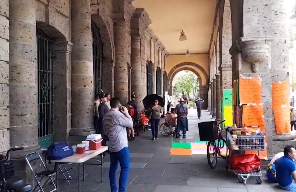 Comerciantes ambulantes del Centro Histórico de Guadalajara llevan días protestando frente al edificio municipal. Exigen que el Ayuntamiento les otorgue permisos para trabajar y vender en el primer cuadro de la ciudad.