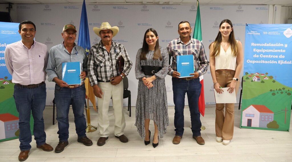 La secretaria de Agricultura y Desarrollo Rural, Ana Lucía Camacho informó que continúan con los apoyos a los ejidatarios de Jalisco para rehabilitar 63 núcleos agrarios, para los que destinarán una bolsa de 15 millones de pesos, debido a que estos espacios son importantes pues cumplen con varios objetivos, celebrar reuniones, capacitar ejidatarios, bodegas para resguardar insumos e incluso como puntos de encuentro de los habitantes de las localidades.