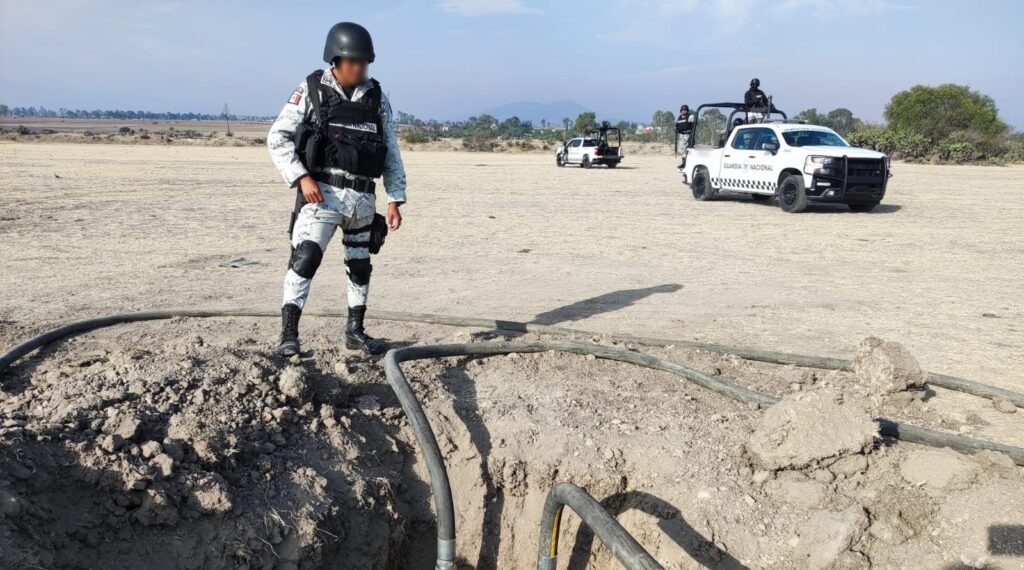 Además, las autoridades castrenses aseguraron cuatro mangueras y aproximadamente 12 mil 613 litros de hidrocarburo (gasolina regular).