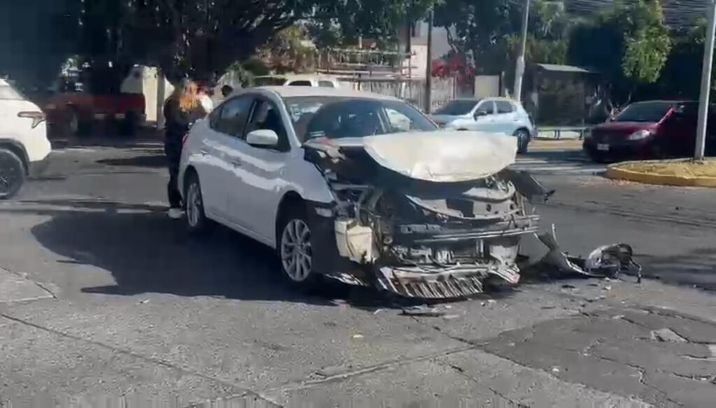 Tremendo choque se registró sobre los cruces de las avenidas Moctezuma y Lebna en la colonia Jardines del Sol.