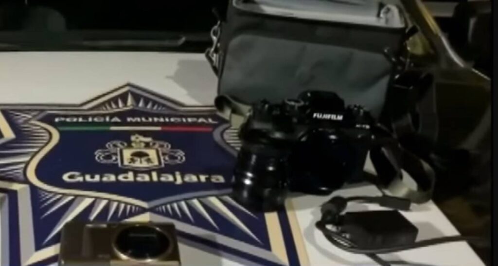 Policías de Guadalajara arribaron, tras una inspección al ladrón le aseguraron dos celulares, una cámara fotográfica, un lente para cámara y una cámara individual, que el guardia reconoció como pertenecientes del teatro.