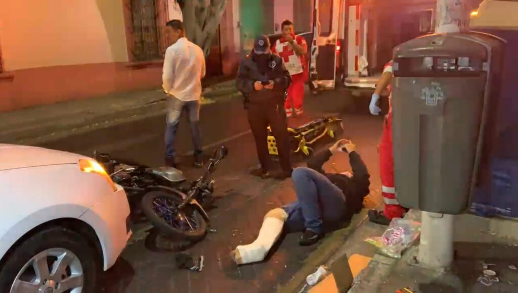 El joven motociclista de 17 años no respeto los semáforos de los cruces de Mariano Bárcena y Garibaldi en la zona centro de GDL. Por lo tanto un vehículo lo embistió. Omar Hernández paramédico de la cruz verde se encargó de las atenciones médicas del lesionado, habla del hecho.