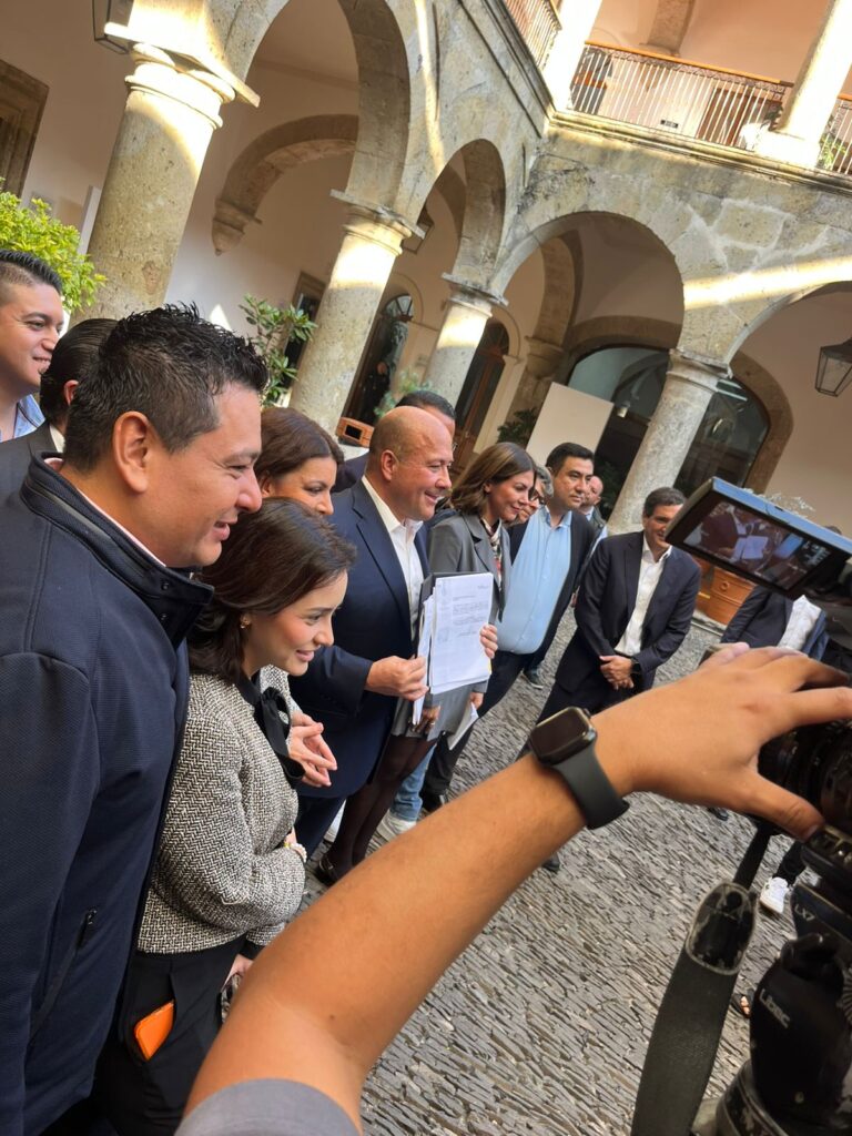 El sistema de Salud y de Educación se blinda para que la Constitución del Estado defienda estos rubros y no pueda llegar alguien más y los entregue. “Aquí inicia la ruta de la construcción de un nuevo pacto Fiscal, defenderé a Jalisco hasta el último día”, añadió el mandatario estatal que una vez terminadas las preguntas de los medios, caminó acompañado de Claudia Salas, Claudia Murguía, Clemente Castañeda y otros representantes de la política jalisciense a entregar las iniciativas personalmente en el Congreso del Estado.