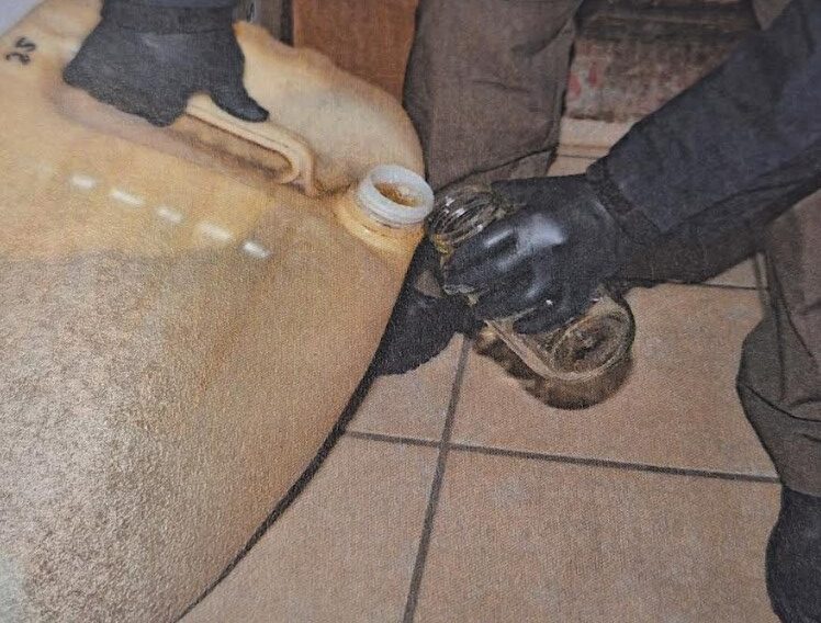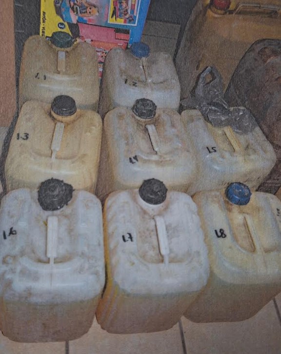 Cabe resaltar que, en la diligencia de cateo, la Policía Federal Ministerial detuvo a Edgar “M” y Jessica “F”, a quienes se les aseguraron ocho contenedores que contenían 148 litros 20 mililitros de diésel y cinco contenedores con 373 litros 756 mililitros de gasolina regular.