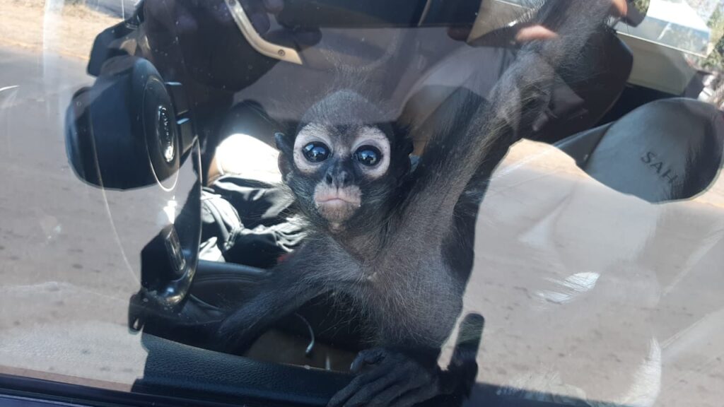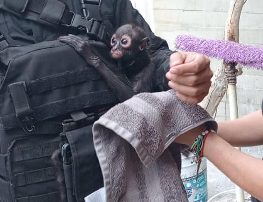 “Se procede con los protocolos y se le solicitaron a este sujeto los documentos que acreditaran la legal posesión. De este animal. Al no contar con ellos. En ese mismo momento los compañeros aseguran al animal, lo que aparenta ser un mono araña que es una especie protegida por la ley.”