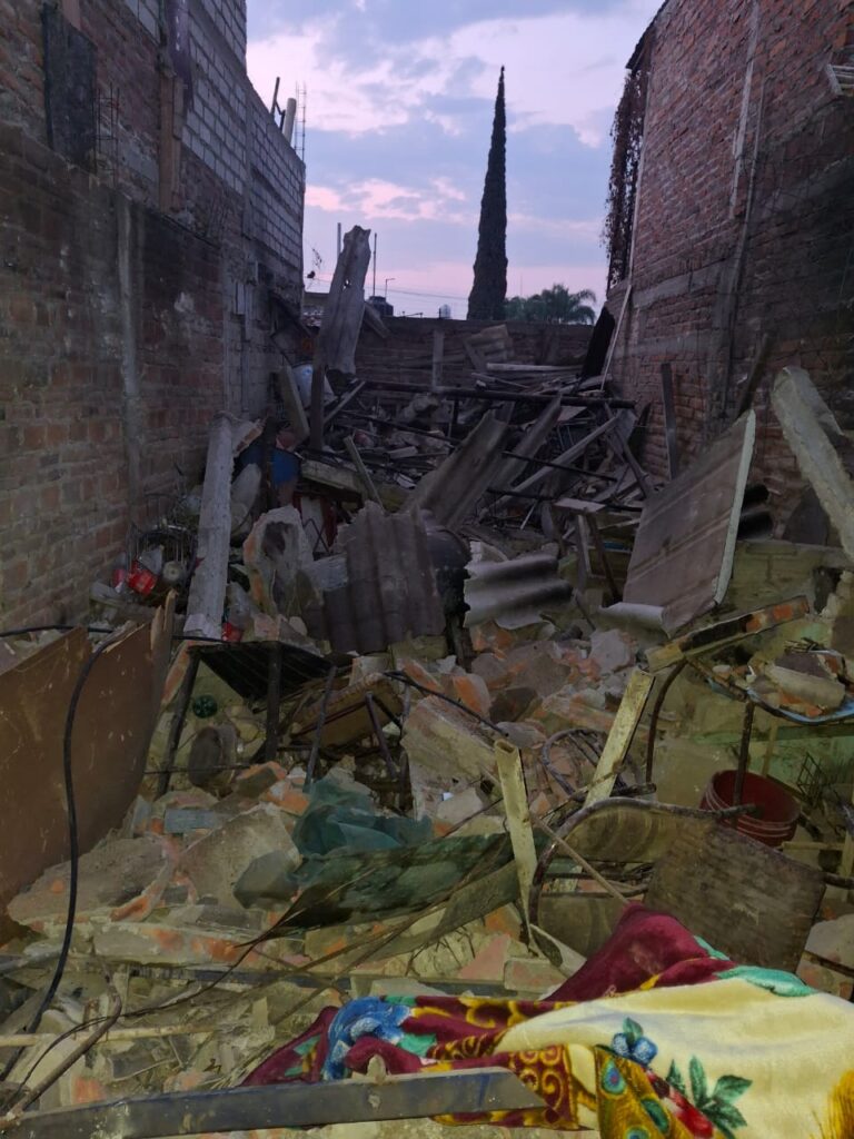 Un cilindro de gas en mal estado explotó al interior de una vivienda ubicada en los cruces de la calle Obrero y constitución en la colonia San José del 15. El estruendo provocó derrumbe en la vivienda. Autoridades de rescataré acudieron al lugar. Leopoldo Padilla. Director de protección civil y bomberos de El Salto. Habla respecto a las 5 personas que resultaron lesionadas.