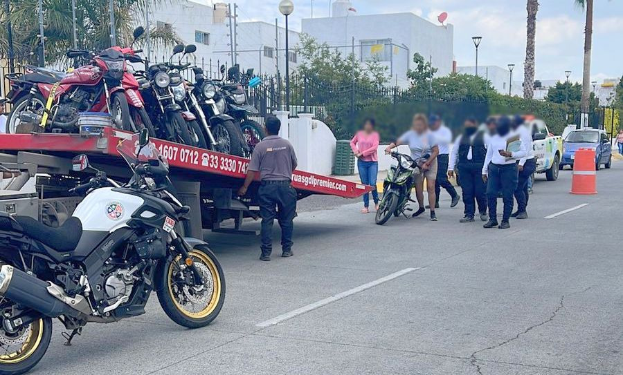 Durante la revisión de los vehículos que circulaban por las zonas intervenidas, han sido aseguradas 516 motocicletas y cuatrimotos por diversas irregularidades, como la falta de casco de seguridad en conductores y tripulantes, ausencia de placas o tarjeta de circulación, alteración en números de serie, falta de póliza de seguro o licencia de motociclista, conforme a lo establecido en la Ley de Movilidad del Estado de Jalisco.