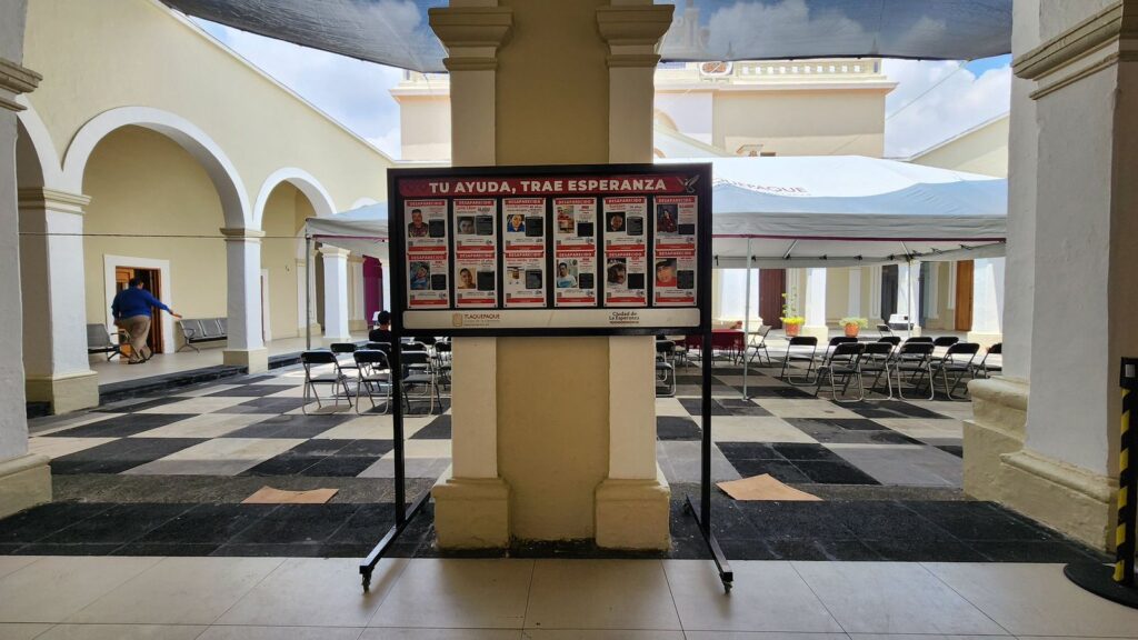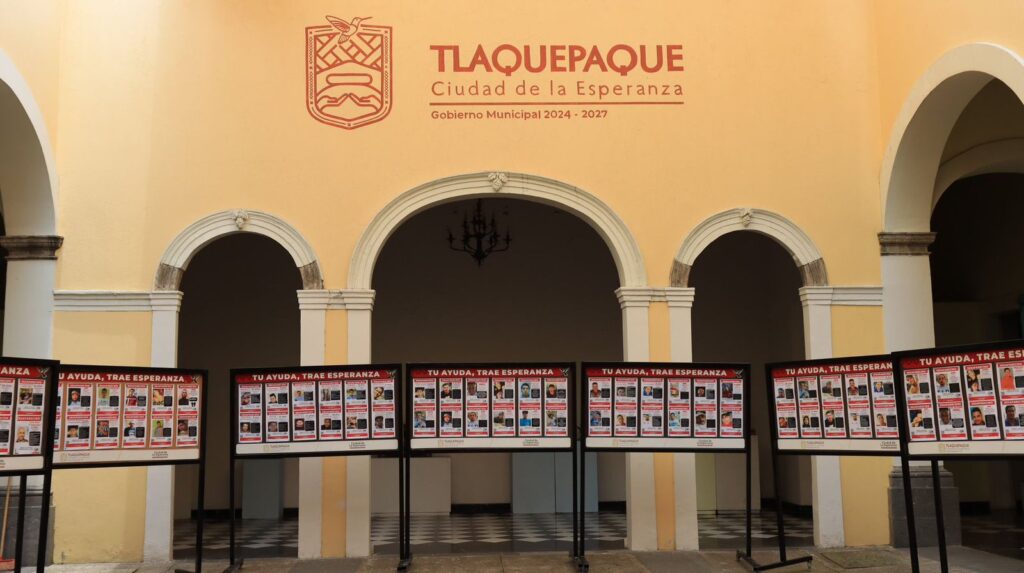 Tlaquepaque, Jalisco.- Ofrecen espacios… Para que familiares de personas desaparecidas puedan difundir las fichas de búsqueda el ayuntamiento de Tlaquepaque puso a disposición 15 mamparas de manera permanente para que visitantes y turistas puedan acceder a esta información de manera más fácil habla la presidenta Laura Imelda Pérez segura