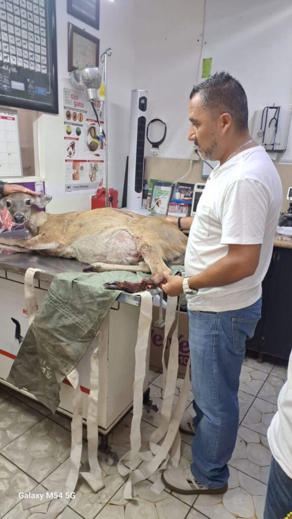 Sobre la autopista Jalostotitlán-san juan de los lagos fue localizado un venado con lesiones en sus patas .