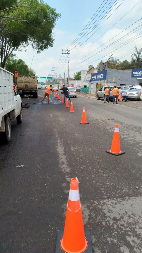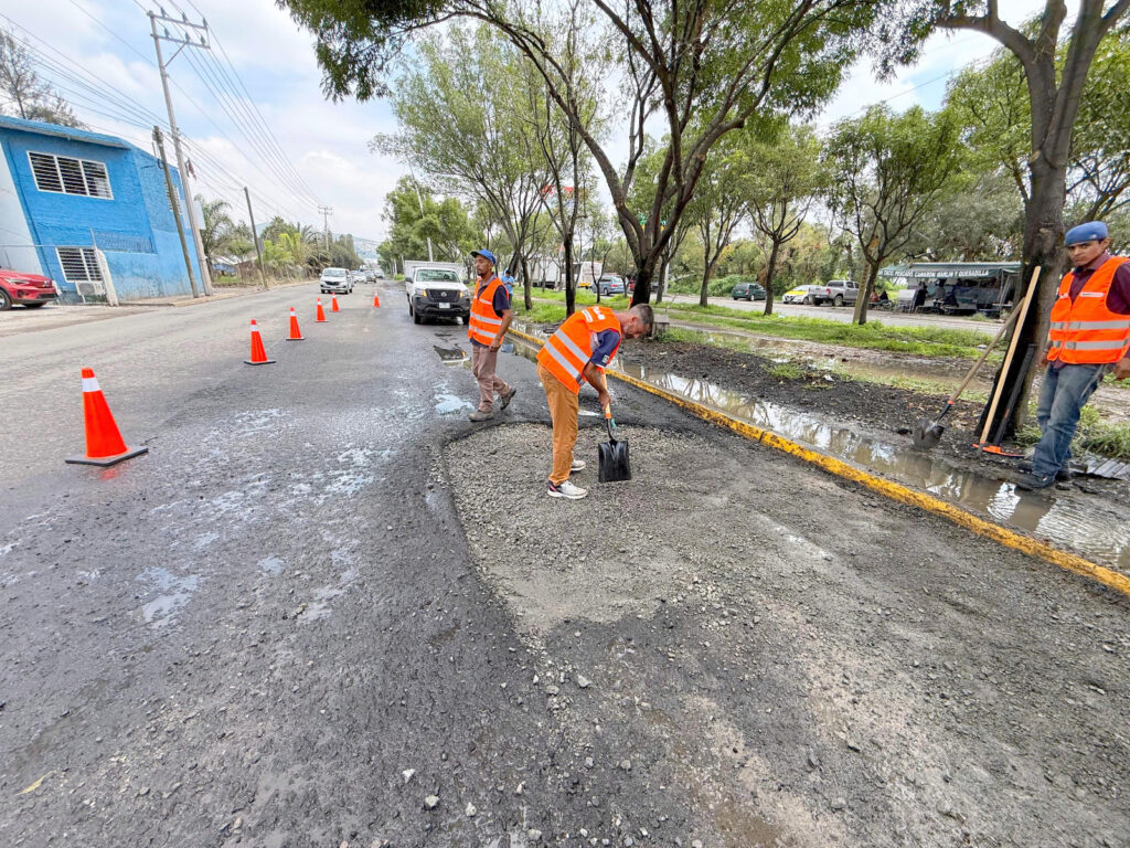 Las cuadrillas municipales realizan labores de bacheo emergente. Es importante señalar que estas acciones son temporales y no representan una solución definitiva, pues en la zona se desarrolla un proyecto integral en coordinación con el Gobierno del Estado, el cual permitirá atender de raíz la problemática.