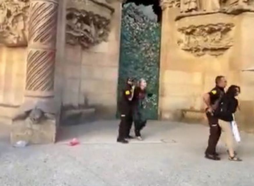 En un video difundido por el grupo, se observa cómo los manifestantes rocían pintura en una de las columnas del templo diseñado por Antoni Gaudí mientras gritaban “justicia climática”. Ambos fueron detenidos de inmediato por personal de seguridad.
