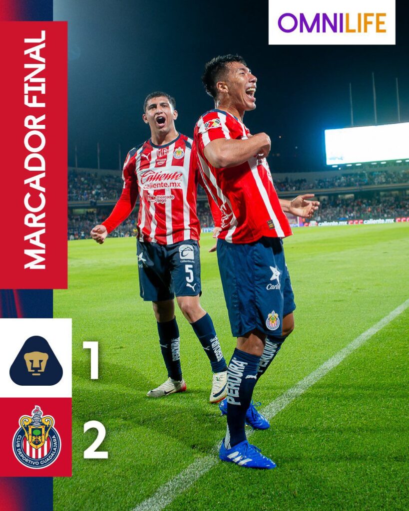 Gracias a las anotaciones de Armando “Hormiga” González y Daniel Aguirre, las Chivas Rayadas del Guadalajara sumaron una victoria más en la actual temporada de forma, tras vencer a los Pumas de la UNAM dos goles a uno en la cancha del Olímpico Universitario, en duelo que dicho sea de paso fue retrasado poco más de 30 minutos debido a la lluvia que cayó en la Ciudad de México.
