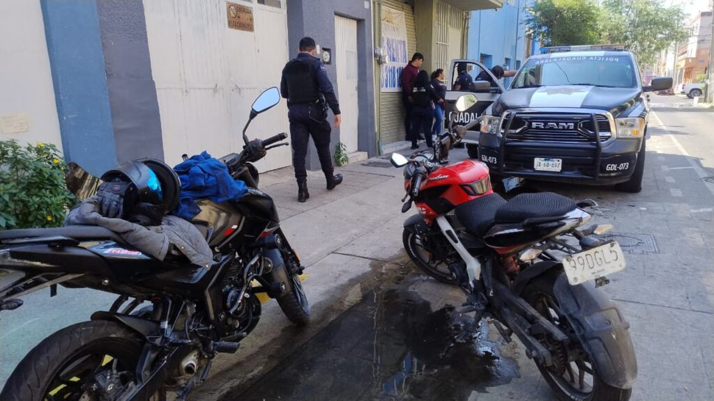 A través de un reporte al 911, se informó que dos sujetos a bordo de una motocicleta negra, intentaban robar otra motocicleta sobre 8 de Julio y Mexicaltzingo, por lo que acudieron a verificar.