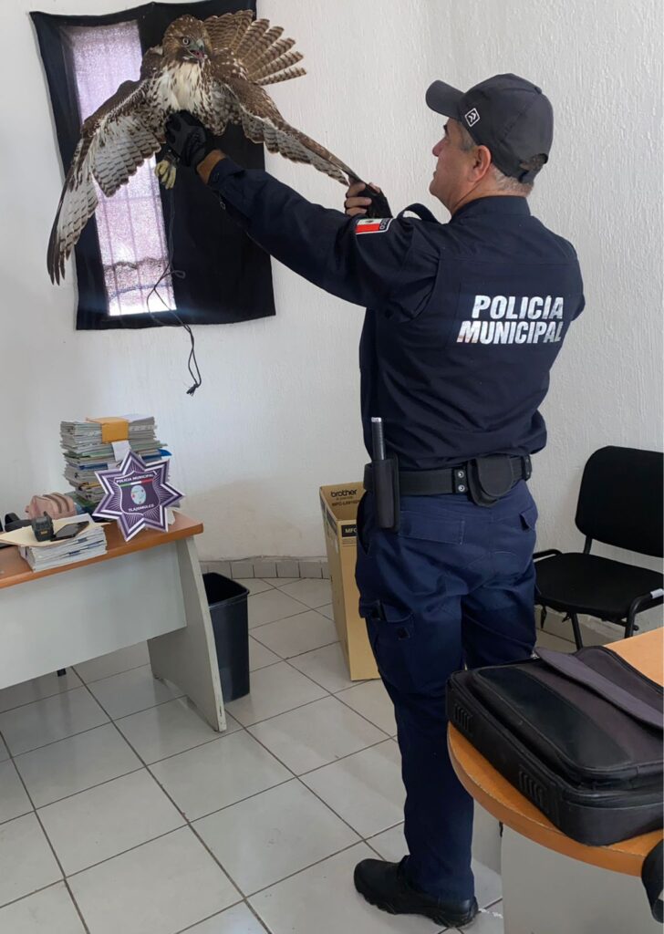 Tlajomulco de Zúñiga, Jalisco.- Oficiales de la Unidad Municipal de Investigación “Oriones” de la Comisaría de la Policía Preventiva Municipal de Tlajomulco, aseguraron un ejemplar juvenil de aguililla cola roja (Buteo jamaicensis) en las instalaciones del cuartel policial ubicado en el fraccionamiento Geovillas La Arbolada, por lo que de inmediato solicitaron la presencia de los especialistas de la Unidad de Rescate de Fauna Silvestre de Tlajomulco, para que realizaran la valoración y resguardo del ave.