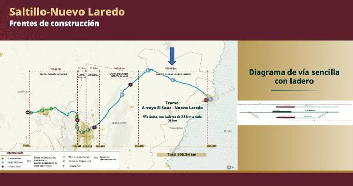 De acuerdo con la Agencia Reguladora del Transporte Ferroviario, el tramo Arroyo El Sauz–Nuevo Laredo forma parte del tren Golfo de México y contempla: