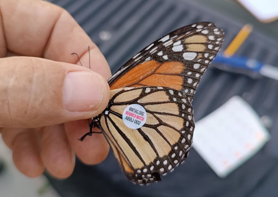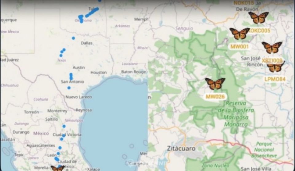 El ejemplar, identificada como MW026, forma parte del Proyecto Colaboración Monarca, una iniciativa internacional que monitorea en tiempo real la ruta migratoria de estas mariposas mediante microtransmisores solares de apenas 60 miligramos.