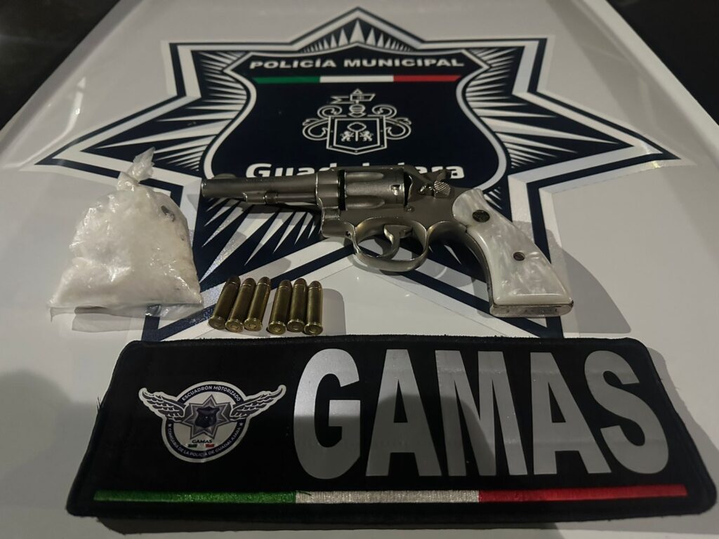 Por posesión de una pistola y crystal: Víctor Oswaldo “N” de 22 años y Damián Misael “N” de 30 fueron detenidos en la segunda sección de la colonia Lomas del Paraíso, en Guadalajara.